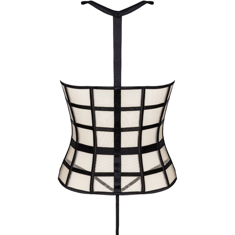 Un ensemble deux pièces composé d’un corset sensuel et bustier et d’un string noir sexy. Le corset est doté d’une fermeture éclair sur le devant, ce qui le rend facile à enfiler. Les couleurs de l’ensemble sont le noir et le beige, qui créent ensemble une combinaison attrayante. Il convient également de prêter attention aux détails séduisants tels qu’un col noir ou des ceintures noires disposées de manière à mettre en valeur au mieux la taille. Ce qui ressort le plus de ce corset, ce sont les découpes qui exposent la poitrine. Cela rend l’ensemble très audacieux et provocateur. Il n’y a pas grand-chose à laisser à l’imagination. Les autocollants pour tétons seront un excellent ajout au jeu et ajouteront un peu de piquant.